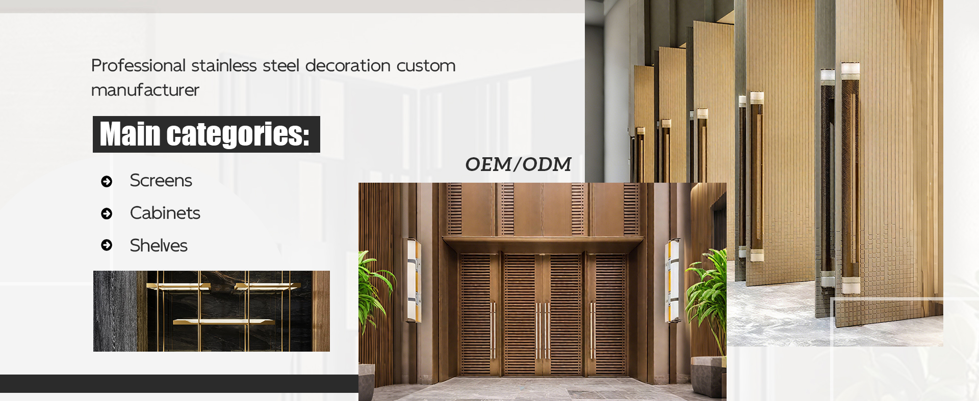 Our company specializes in the design, development, material production and installation of stainless steel engineering decoration. Our scope mainly includes high-end stainless steel customization for star-rated hotels, high-end commercial venues, top entertainment venues, villas, office buildings, etc.